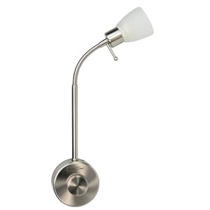 Anwendungsbereich: innen Energieeffizienzklasse: C Lichtfarbe: 2900K warmweiß Lichtstrom in Lumen: 380 Content: Metall gebürstet, Glas Fassungstyp / Sockel: G9 mit flexiblem Schwanenhals Lieferung inklusive G9 40W Leuchtmittel kelchförmiger Glasschirm mattiert
