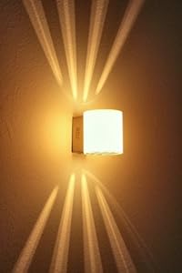 Sehr schön ist, dass man das licht direkt an der lampe mit einem kleinen schalter bedienen kann. Sie sieht sehr schön aus und ist gut für sachte warme beleuchtung geeignet. Die lampe war schnell montiert und spendet schönes licht, da ich eine andersfarbige tapete als kontrast unter der lampe habe, erscheint sie auch nicht zu hell. Die lampe hängt im treppenhaus und wirft schöne strahlen. Der lichteffekt wird noch besser, wenn gentleman die g9 gegen kleinere und oder farbige austauscht.